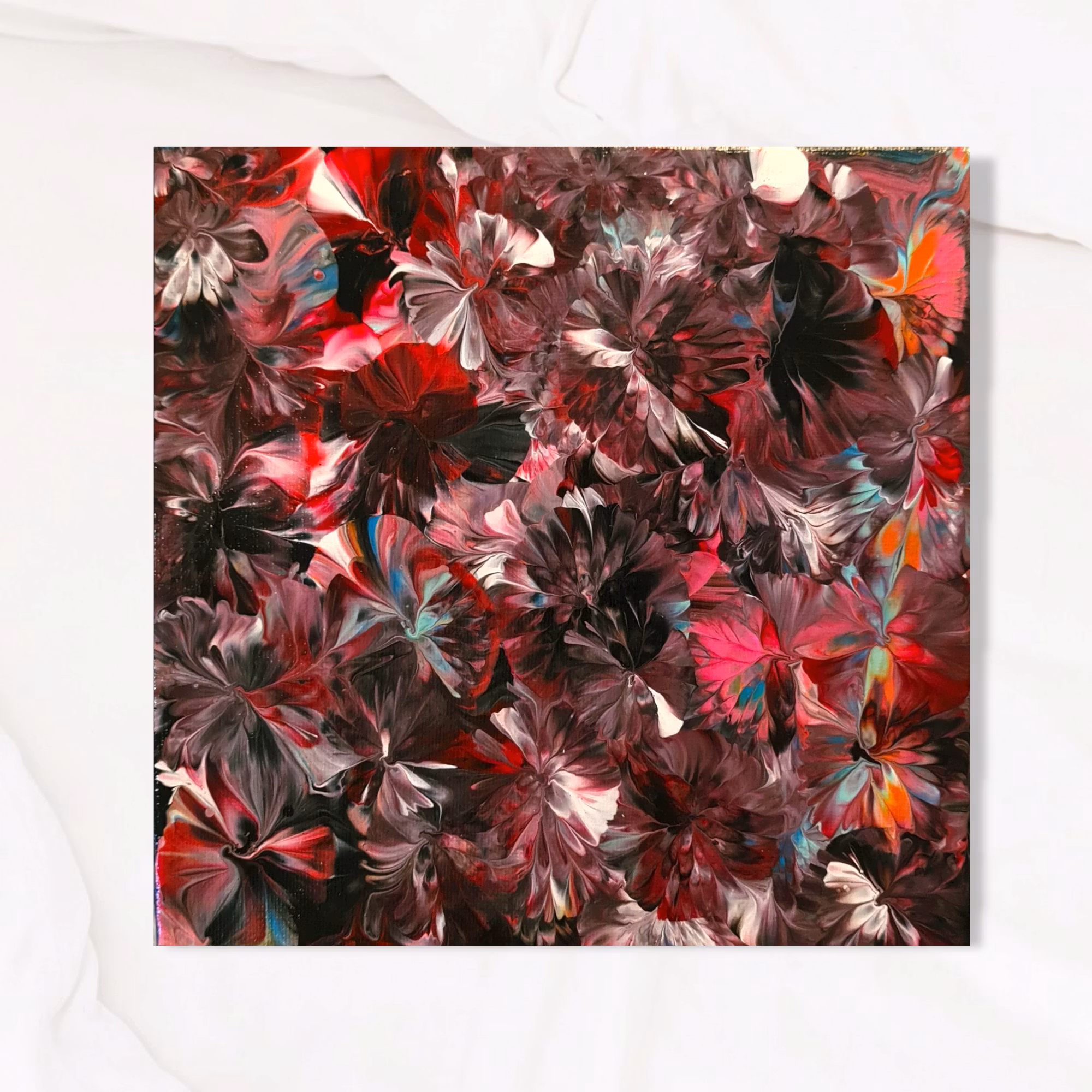 Tavla 20x20 cm. Akryl på sträckt canvas. Finns endast detta exemplar. Tavlan är ytbehandlad för bästa hållbarhet. Upphängningsbeslag medföljer.