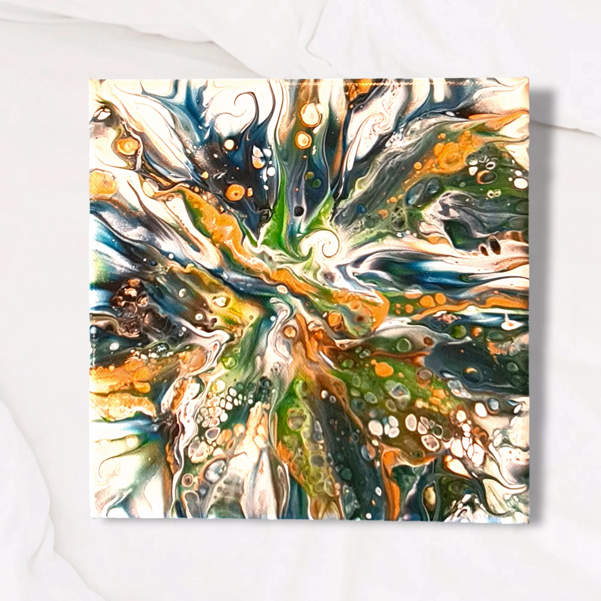 Tavla 20x20 cm. Akryl på sträckt canvas. Finns endast detta exemplar. Tavlan är ytbehandlad för bästa hållbarhet. Upphängningsbeslag medföljer.
