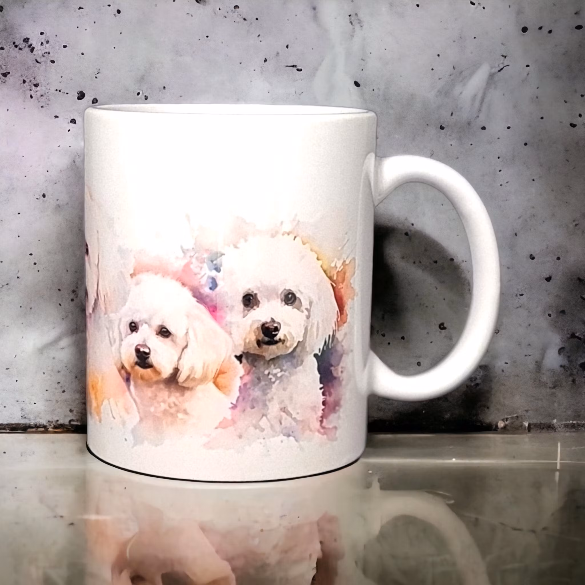 Den här muggen är en kärleksfull hyllning till en av de mest älskvärda hundraserna – alltid glad, alltid fluffig och alltid redo för en mysig fikastund.