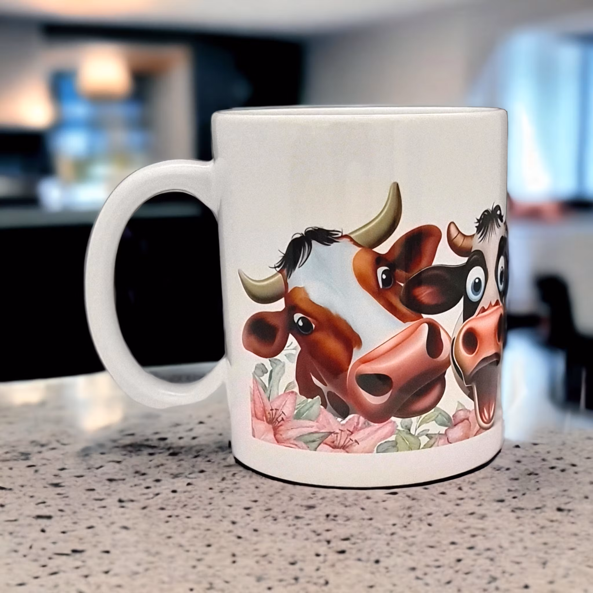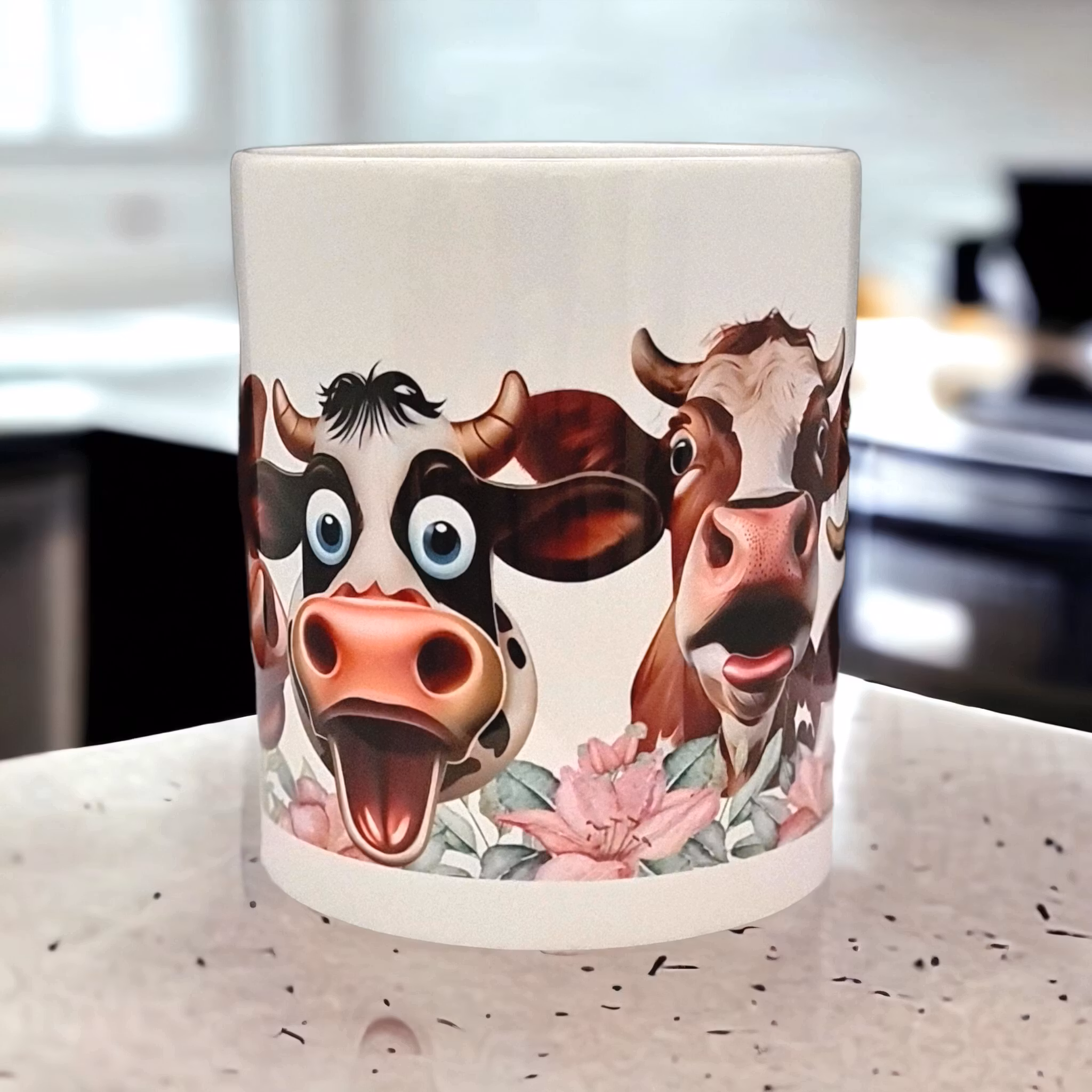 Att starta varje dag med ett leende är fullt möjligt med denna urgulliga mugg. Sååå charmiga kossor med roliga uttryck.