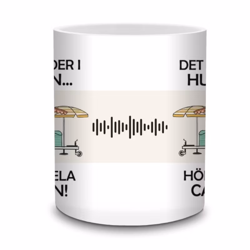 En mugg med både glimt i ögat och igenkänningsfaktor deluxe. Perfekt till husvagnsfolket som vet att tunna väggar och glada kvällar hör semestern till.