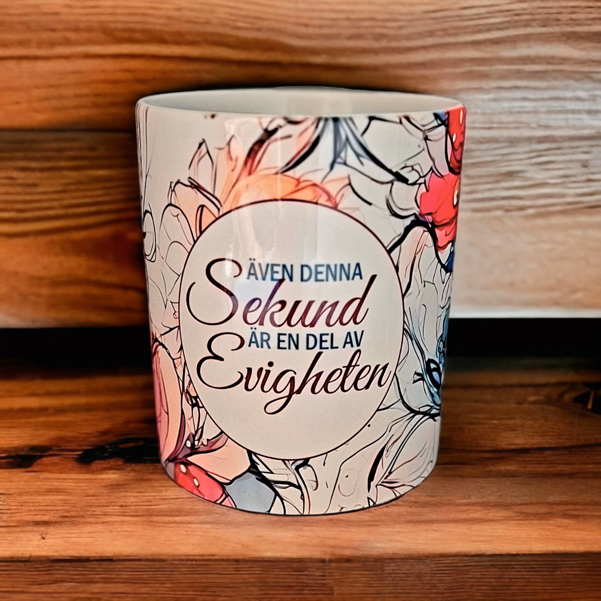 En underbart vacker mugg som påminner oss om att stanna upp och ta tillvara på nuet.