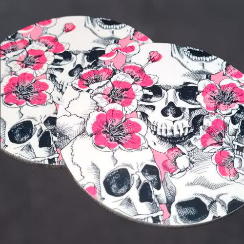 Glasunderlägg Dödskallar i 2-pack 69 kr I lager. LÄGG I VARUKORGEN Dela Produktbeskrivning Recensioner Snygga glasunderlägg med dödskallar och rosa blommor. Underlägget är gjort i HDF och har kork på undersidan.Mått: Ø 95 mm
