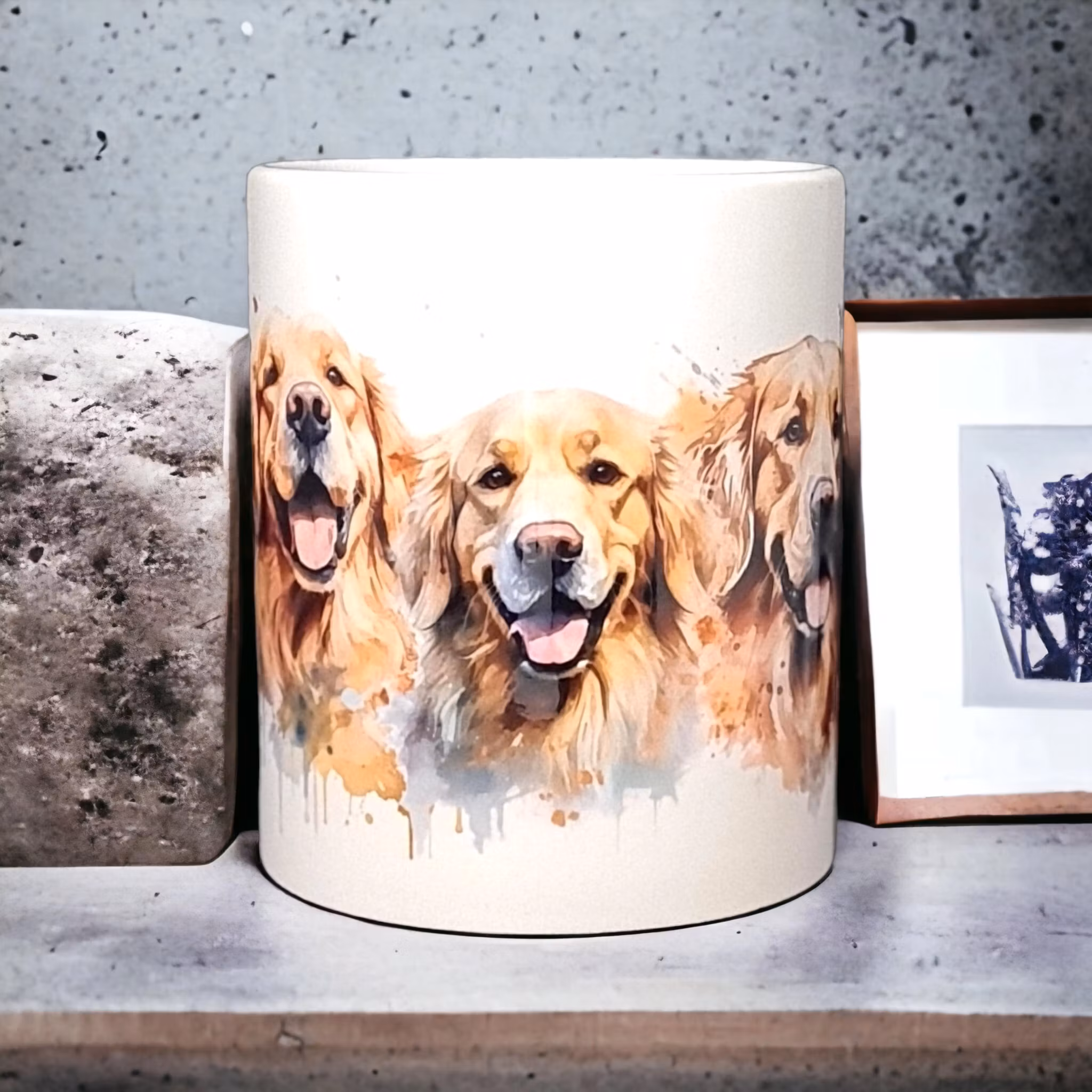 Vår Golden Retriever-mugg är en hyllning till en av världens mest älskade hundraser – lojal, lekfull och alltid med viftande svans.
