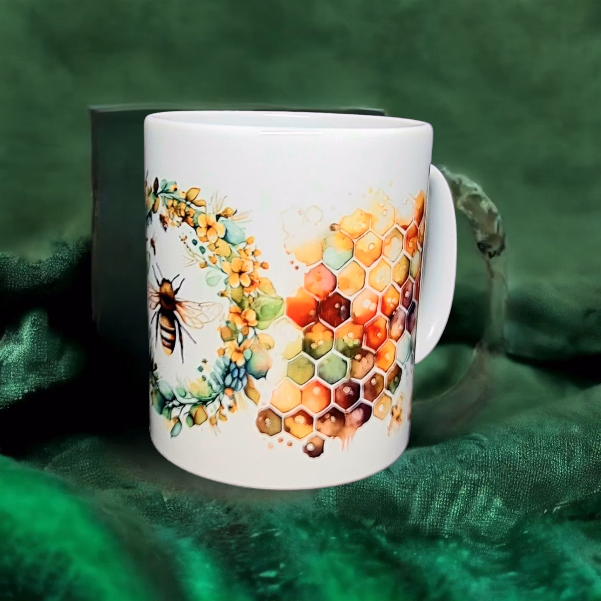 En riktigt somrig mugg i härliga färger – man kan nästan känna smaken av solvarm honung. Perfekt för dig som älskar naturen, bivänlig design och något sött i livet.