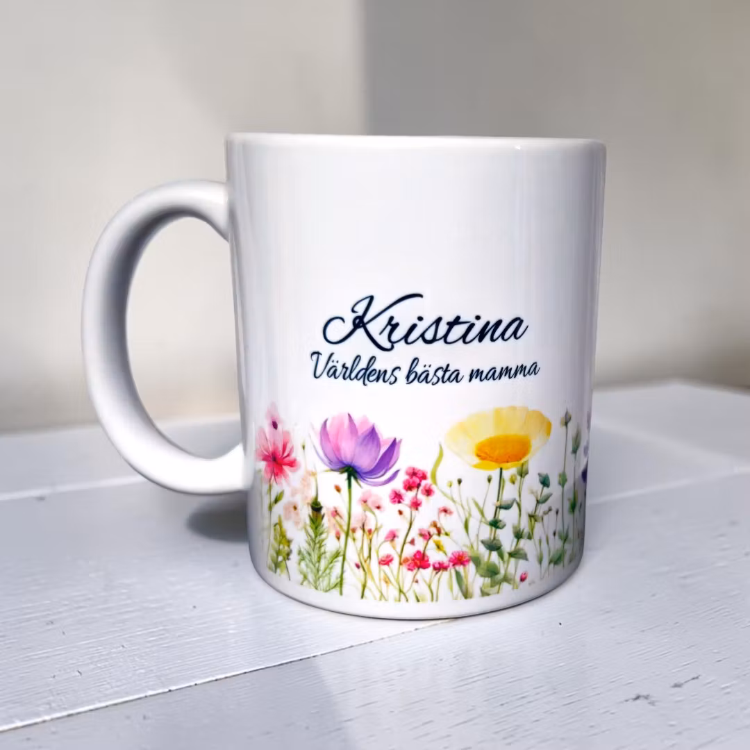 En personlig mugg som säger det viktigaste varje dag. Med texten “Världens bästa mamma” tillsammans med namnet blir den här muggen en unik och omtänksam present till exempelvis Mors dag. En fin detalj i vardagen som påminner om hur uppskattad hon är. En enkel men betydelsefull gåva som håller länge både i kvalitet och känsla.