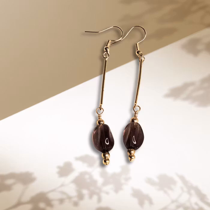 Jättevackra örhängen med en brunlila, vriden pärla. Krokarna är tillverkade i kirurgiskt stål så det passar även dig som är känslig.