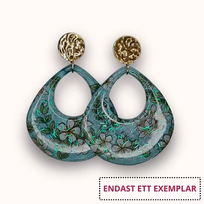 Jättefina, glansiga örhängen i resin med örstickare i guldfärgad, nickelfri metall. Höjd på örhänget: 5,5 cm