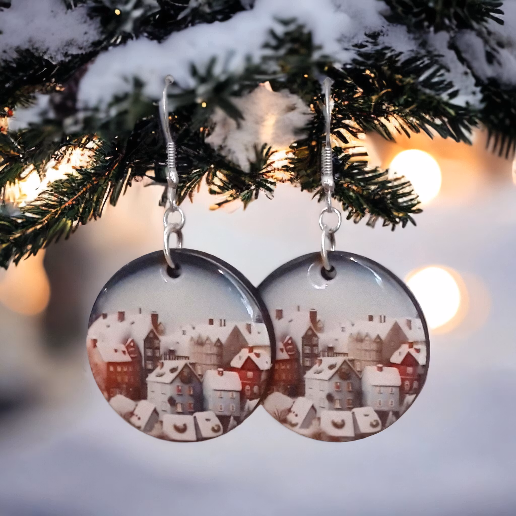 Fjäderlätta, unika örhängen av MDF med ett tryckt, vintrigt motiv. Dessa har även ett skyddande lager med resin för ett mer hållbart och glänsande resultat.