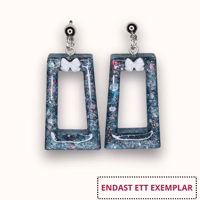 Söta örhängen i resin med örstickare i silverfärgad, nickelfri metall och gullig rosett. Höjd på örhänget: 5,4 cm
