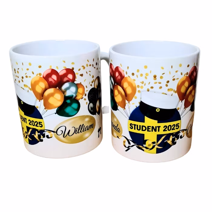 Firande av studenten är en milstolpe som förtjänar att bli ihågkommen. Med vår specialdesignade studentmugg finns minnet alltid till hands och fikastunderna blir en påminnelse om en fantastisk prestation. Perfekt som present till den stolta studenten! Denna unika mugg pryds av tryck på båda sidor, vilket gör den idealisk för både höger- och vänsterhänta. En mugg med studentens namn ger ju dessutom en mer personlig touch.